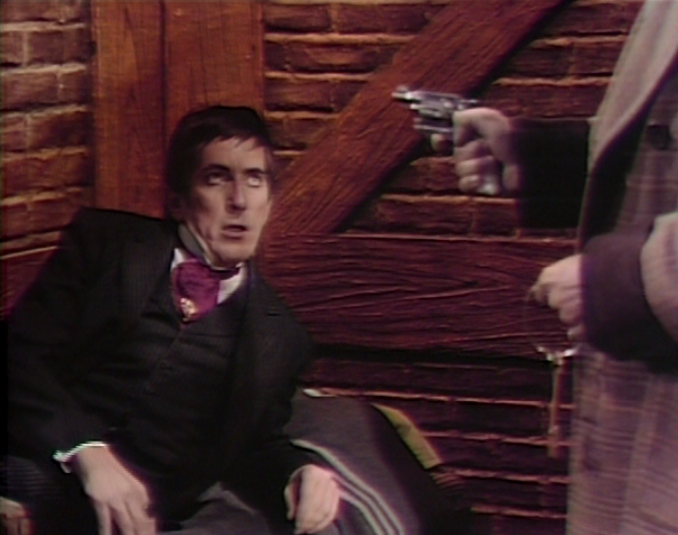 Joshua is in Josette's room at the Old House. He nails boards over the door. He goes down the stairs and hears Barnabas call to him. Barnabas appears and Joshua raises his rifle.