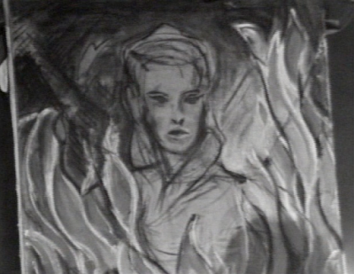 Episode 133. While it disturbs him to paint her surrounded by flames, he can't seem to stop himself, and makes several versions, which seem to be imbued with a strange power. In