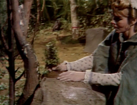 Trask finds the Countess following him in the woods. She says she wants to see that Vicki is safe. He sends her back to the house. She asks if he is afraid she'll see that he was wrong. He says he was trying to protect her. He invites her to follow him. They arrive at a tree, and he says she has escaped, but her guilt has been proven. He points to the smoldering stump of a tree.