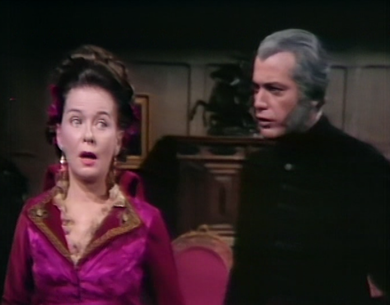 He leaves, and Trask enters. She tells him that she's planning to change her will to ensure all of her money go to charitable causes when she dies. He says she can't, until she suggests that she thought he would appreciate that. She goes upstairs, and Trask leaves in a hurry.